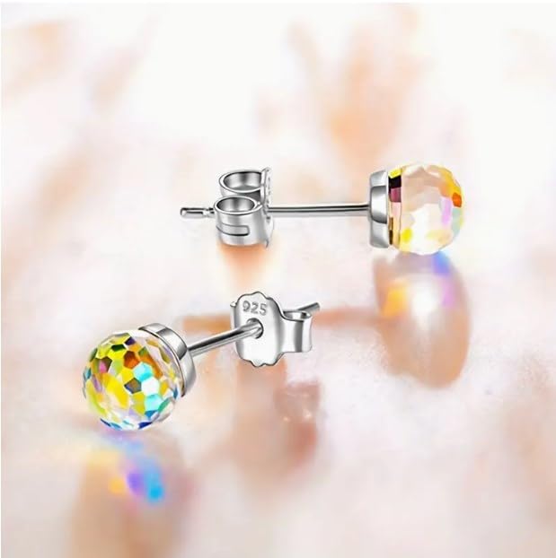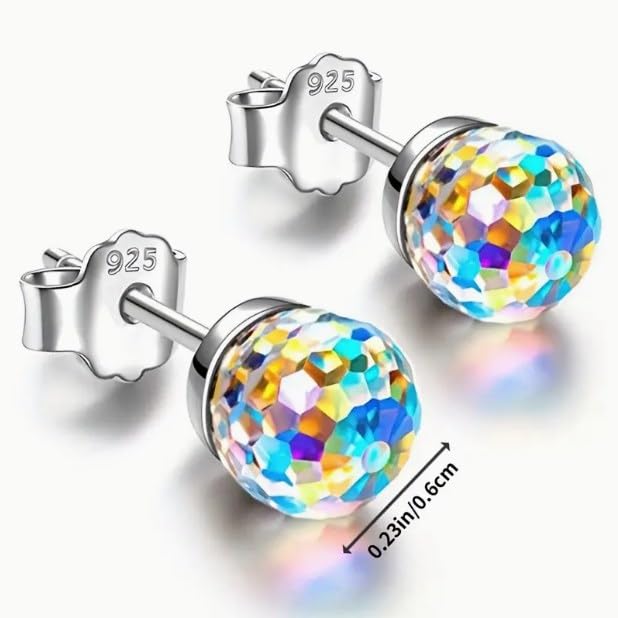 fashion mania - زوج واحد من اقراط الزفاف المرصعة بالكريستال الملون من فاشون مانيا، اقراط من الفضة عيار 925 متينة ومعالجة، مجوهرات للنساء والفتيات.