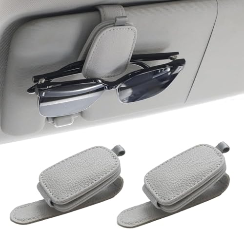 fashion mania - حامل نظارات شمسية يثبت على شماسة السيارة من فاشون مانيا، حوامل نظارات جلدية مغناطيسية وأكسسوارات شماسة السيارة من قطعتين، بلون رمادي