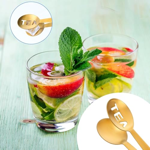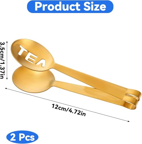 fashion mania - معصرة أكياس شاي مكونة من قطعتين، ملعقة مصفاة للشاي من الفولاذ المقاوم للصدأ، ومشبك كيس الشاي للإمساك بأوراق الشاي السائبة من فاشون مانيا، عبوة من قطعتين (لون ذهبي + فضي)