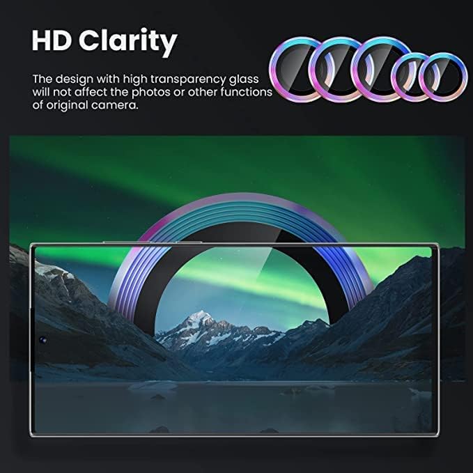 - يرجى التحقق من الطراز قبل الطلب - تم تصميم ملحقات كاميرا جالاكسي S22 الترا من الألومنيوم المستخدم في صناعة الطائرات والزجاج المقوى بدرجة صلابة 9 لهاتف جالاكسي S22 الترا 6.8 بوصة إصدار 2022. (ملاحظة: لا يناسب جالاكسي S22 6.1 بوصة، جالاكسي S22 بلس 6.6 بوصة أو أي طراز آخر) بدون فقاعات، مناسب للحافظة، لا يترك أي بقايا بعد إزالته.