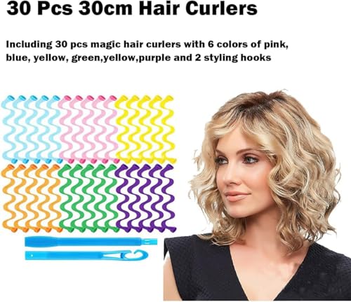 - 【ما تحصل عليه】تتضمن 30 قطعة من أدوات تجعيد الشعر السحرية مع 6 ألوان من الوردي والأزرق والأصفر والأخضر والأصفر والأرجواني وخطافين تصفيف، يمكن تمديد كل بكرة تمويج الشعر. كما أن لون خطافات التصفيف عشوائي.