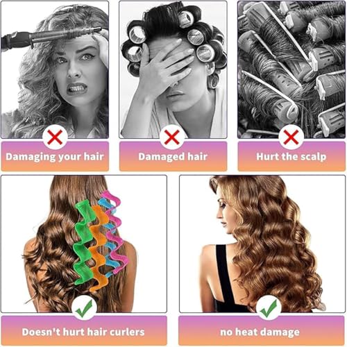 - 【أداة تجعيد الشعر بدون حرارة】تعد أداة تجعيد الشعر بدون حرارة بديلاً ممتازًا لمكواة التجعيد التقليدية لحماية شعرك من التلف.