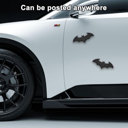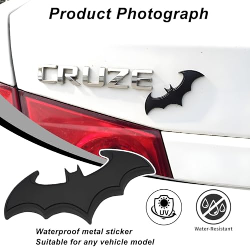 fashion mania - ملصق معدني ثلاثي الابعاد للسيارة من فاشون مانيا، شعار الخفافيش ممتص الصدمات والصندوق الخلفي، ملصق مضاد للخدش، اكسسوارات تزيين الباب الخلفي، عالمي لسيارات الدفع الرباعي والسيدان والشاحنات (اسود)