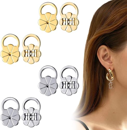 - محتويات العبوة: سوف تحصل على 4 أزواج (8 قطع) من البريمات المعدنية باللون الفضي والذهبي للحلقان الثقيلة. مناسبة لجميع أنواع الحلقان المرصعة والحلقان المتدلية الثقيلة. كما أنها هدايا جيدة لمشاركتها مع عائلتك وأصدقائك.