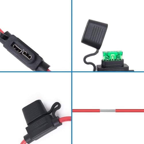 - [جودة عالية]: سلك 12AWG شديد التحمل لحماية أفضل للدوائر الكهربائية. يعد حمل التيار العالي مهمة شاقة. يبلغ الطول الإجمالي لسلك حامل المصهر المدمج حوالي 11.8 انش، بشكل دائري، ويمكنك تحديد الطول على كل جانب وفقًا لاحتياجاتك.