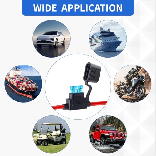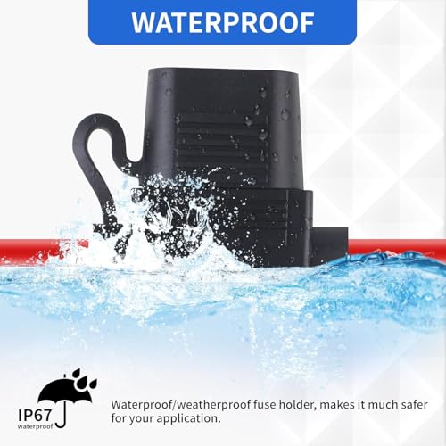 - [قابل للاستخدام على نطاق واسع]: تصميم حامل المصهر المدمج المقاوم للماء سهل التركيب، مما يوفر لك الوقت والمتاعب. مناسبة لمختلف المركبات مثل السيارات والسفن وعربات الجولف والإضاءة والدوائر وما إلى ذلك