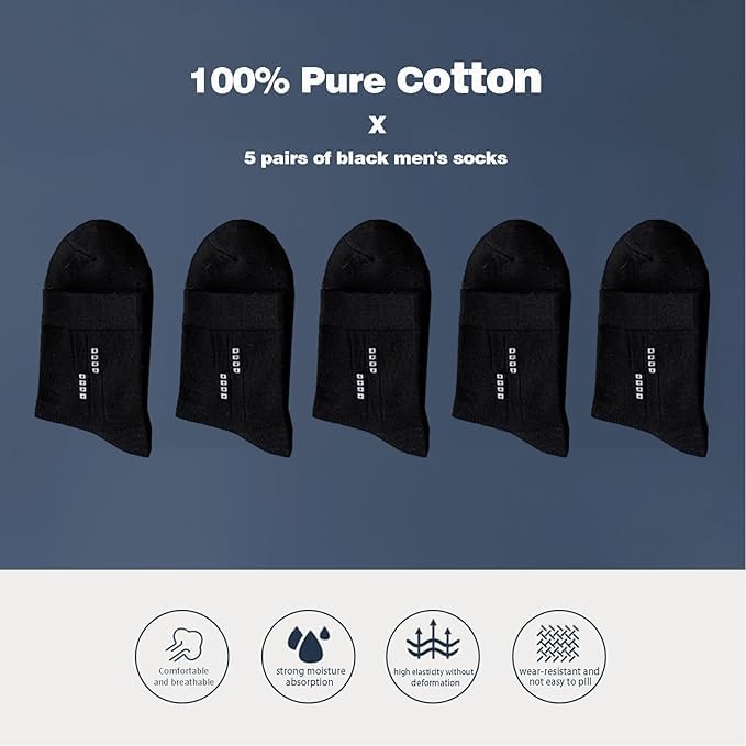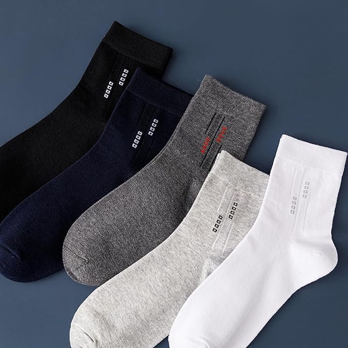 fashion mania - 5 ازواج جوارب رجالية من القطن بنسبة 100% من فاشون مانيا: جوارب رسمية ماصة للرطوبة، مناسبة لجميع الفصول، نمط مخطط في مجموعة متنوعة من الالوان للملابس الكاجوال