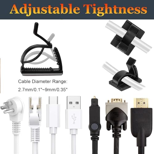 fashion mania - 50 قطعة من مشابك تنظيم الكابلات القابلة للتعديل من فاشون مانيا، منظمات لاصقة، مشابك أسلاك لاصقة، حامل أسلاك للتلفزيون، والكمبيوتر، والايثرنت تحت المكتب وعلى الحائط في المنزل والمكتب