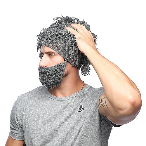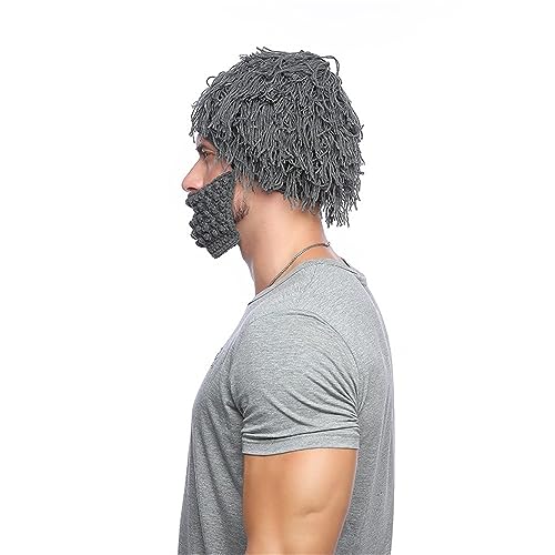 fashion mania - قبعة محبوكة بنمط فايكنج للبالغين صغيرة يدويا بتصميم جمجمة مضحكة من فاشون مانيا رمادي