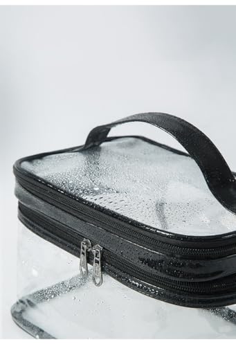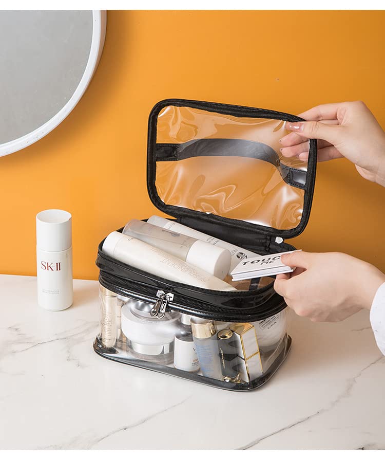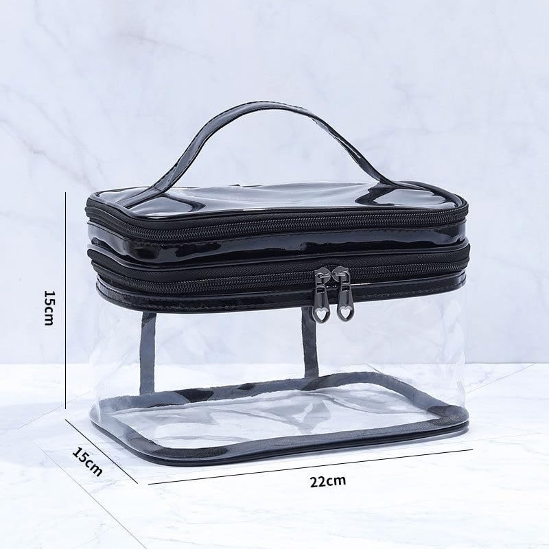 - حقيبة مكياج شفافة مصنوعة من بلاستيك PVC المقاوم للماء. شفافة وسهلة التنظيف بالمسح، مما يسمح برؤية سريعة والوصول إليها.