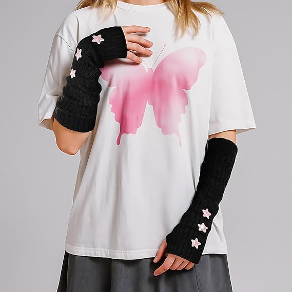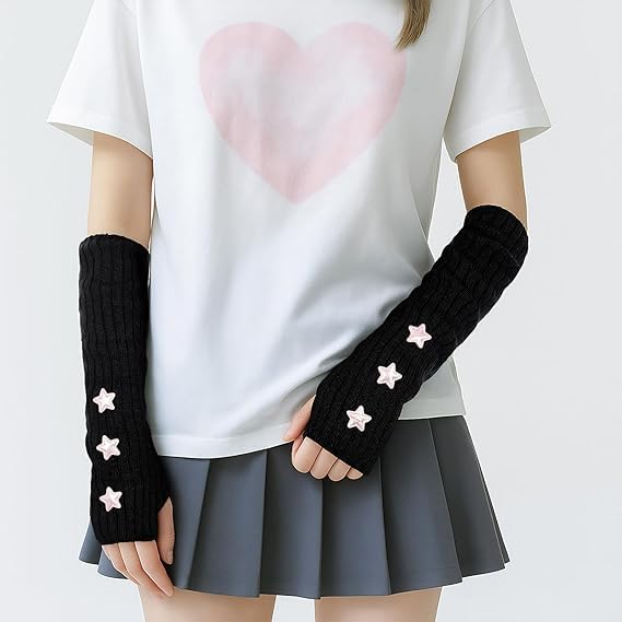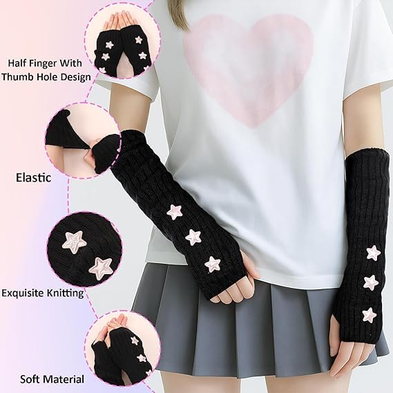 fashion mania - قفازات تدفئة الذراع واي 2 كيه ستار من فاشون مانيا، قفازات طويلة محبوكة بدون اصابع لتدفئة الذراع للنساء، اكسسوارات تنكرية بنمط قوطي بانك