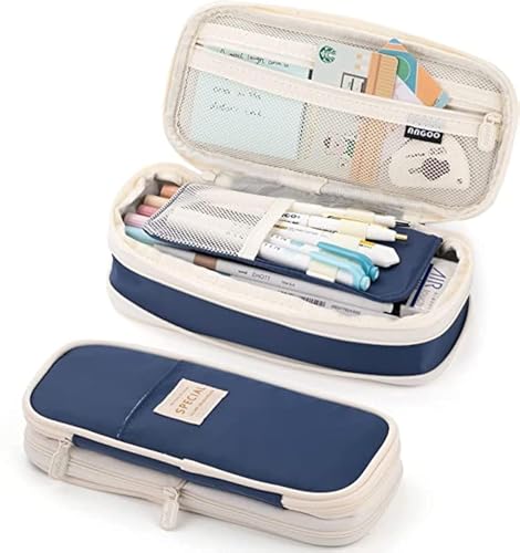 fashion mania - مقلمة كبيرة السعة بشكل شنطة للاقلام الرصاص والادوات المكتبية للمراهقين والبنات (كحلي)، من فاشن مانيا، بوليستر