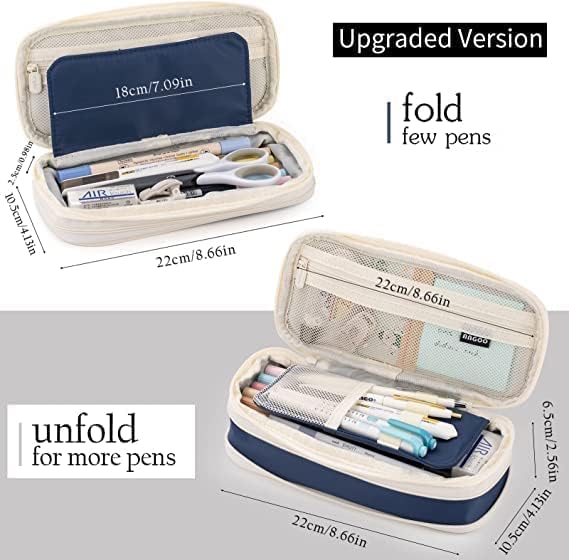 - [سعة عالية]: يمكنها تخزين أكثر من 100 قلم أو قلم رصاص. مثالية للطلاب الذين يحملون مجموعة متنوعة من الأدوات إلى جانب الأقلام، مثل المطاط والملصقات والمسطرة وما إلى ذلك.