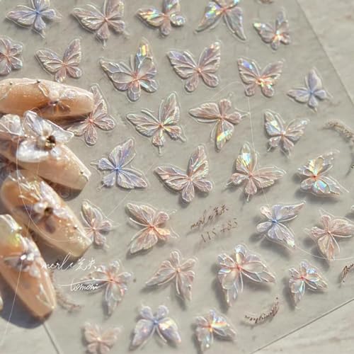 - 【تصميم رائع】ملصقات أظافر أنيقة بنمط فراشة وردية 5D بألوان زاهية وتصميم رائع، مناسبة لتصميم الأظافر في الفصول الأربعة.