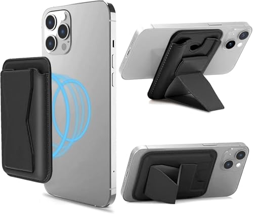 fashion mania - حامل بطاقات من الجلد النباتي مع حامل لإمساك الموبايل ومسند، محفظة مغناطيسية لسلسلة ايفون 16/15/14/13/12 من فاشون مانيا