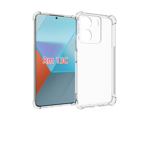 fashion mania - جراب حماية مضاد للصدمات والسقوط مع وسادة هوائية من فاشون مانيا مصنوع البولي يوريثين المقاوم للحرارة والسيليكون الناعم والمطاط المرن لموبايل ريدمي 13C وشاومي بوكو C65 - شفاف