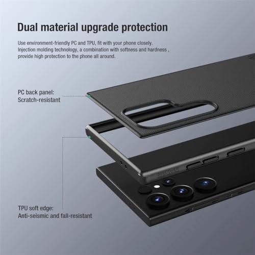 fashion mania - جراب لموبايل سامسونج جالاكسي S24 الترا من فاشون مانيا، خلفي واقي البولي يوريثين الحراري والبولي كربونات نيلكين (أسود)