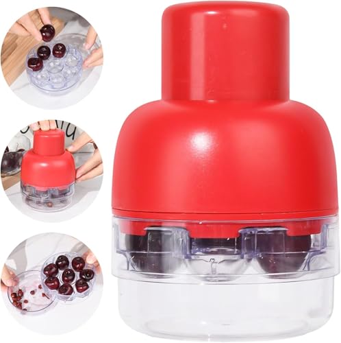 fashion mania - أداة إزالة بذور الكرز 8 فتحات متعددة وآمنة للاستخدام في غسالة الصحون مناسبة لصنع مربى الكرز في المطبخ من فاشون مانيا، أحمر
