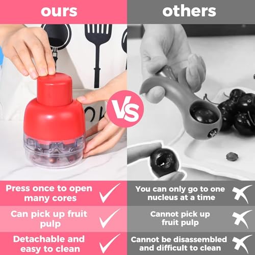 - [مزيل قلب الكرز 8 في 1]: يمكن لمزيل بذور الكرز هذا إزالة 8 قطع من الكرز والعناب وغيرها من الفواكه بنفس الكفاءة في وقت واحد، مع تصميم بسيط وآلية دفع بدون مقبض.