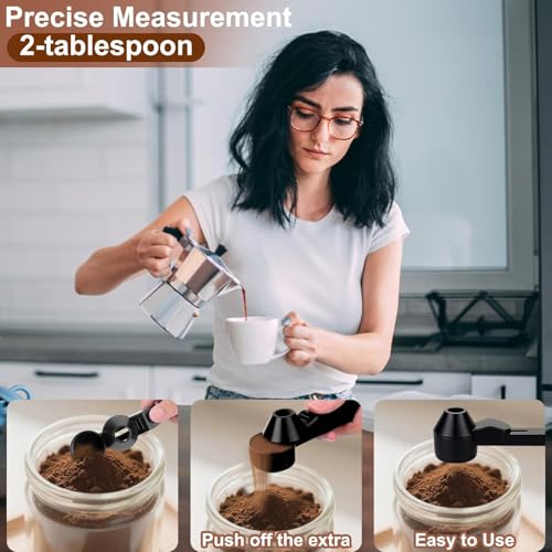 - مغرفة مثالية، قمع بدون فوضى! قل وداعًا للقهوة المطحونة في كل مكان! تحتوي المغرفة الخاصة بنا على أداة تسوية مدمجة تمنحك * جرعة مثالية من 2 ملعقة كبيرة* في كل مرة، وتتحول إلى قمع أنيق لملء الكبسولات القابلة لإعادة الاستخدام دون سكب حبة واحدة. سهلة وبسيطة!