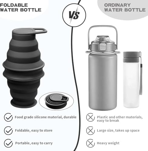 - 【مادة آمنة】: زجاجة المياه السيليكون الخاصة بنا مصنوعة من مادة السيليكون الآمنة غذائيًا، خالية من BPA، آمنة وغير سامة، لذلك يمكنك شربها بثقة. جسم الزجاجة ناعم ومرن، ضغط قابل للطي، ليس من السهل تشويهه.