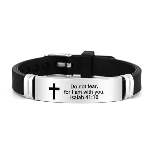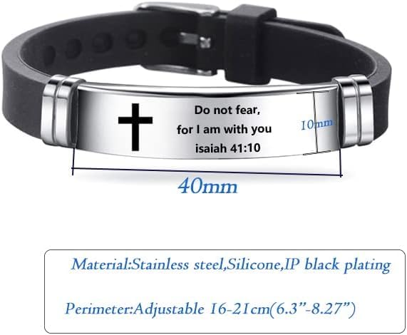 fashion mania - سوار صليب قابل للتعديل من فاشون مانيا، اقتباس ملهم للإيمان والكتاب المقدس المسيحي، سوار معصم من السيليكون هدية دينية للرجال والنساء