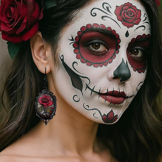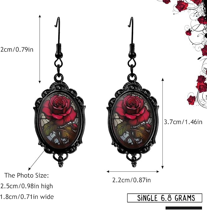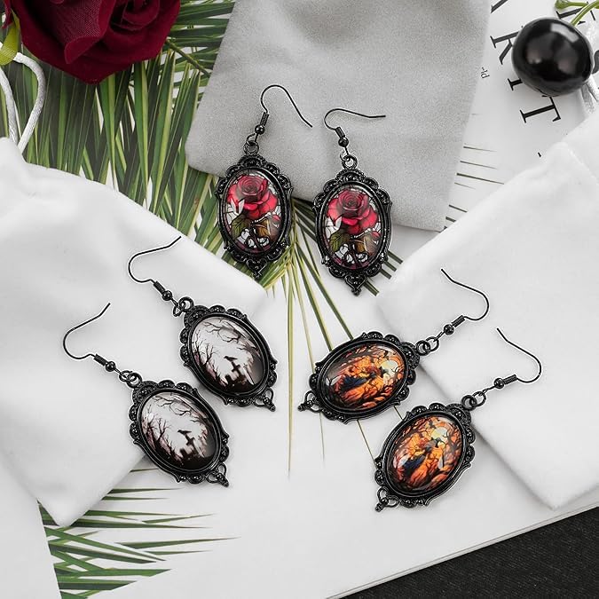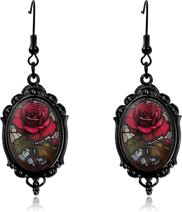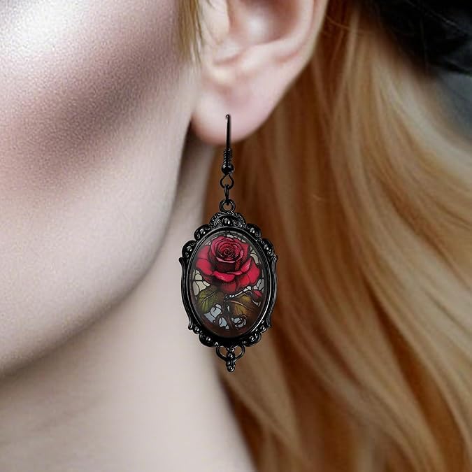 fashion mania - اقراط فاشون مانيا للنساء كاكسسوارات قوطية، اقراط ساحرة قوطية عتيقة، مجوهرات ازياء الهالوين، اقراط مصاص دماء وردة حمراء مجوهرات الغراب كهدية قوطية للنساء