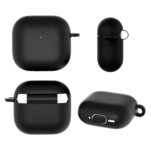 fashion mania - حافظة حماية صلبة من السيليكون مضادة للصدمات مع سلسلة مفاتيح لسماعات آبل ايربودز الجيل الرابع إصدار 2024 فاشون مانيا أسود