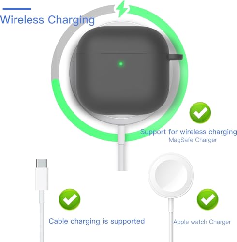 - [دعم الشحن اللاسلكي]: صُممت حافظة سماعات ايربودز بدقة للتوصيل بسهولة بجميع المنافذ لدعم الشحن السلكي واللاسلكي دون إزالة الحافظة.