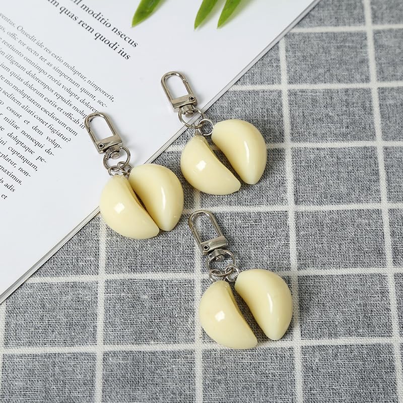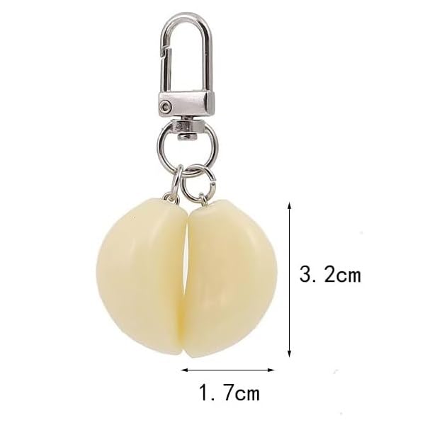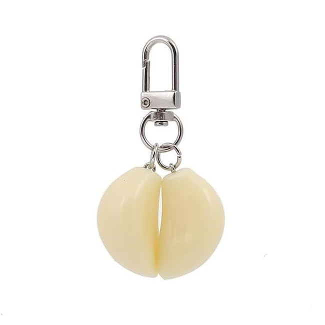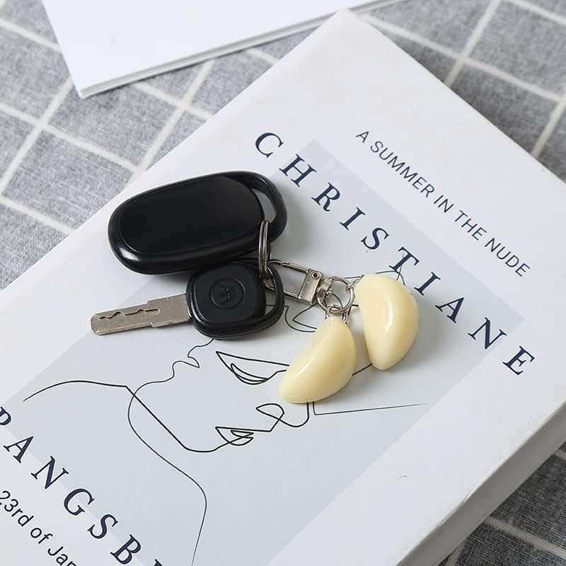 fashion mania - سلسلة مفاتيح بتصميم ثوم لحقيبة اليد وشنطة اليد وشنطة الظهر ومفاتيح السيارة، سلسلة مفاتيح طعام مرحة ولطيفة، من فاشون مانيا، أبيض