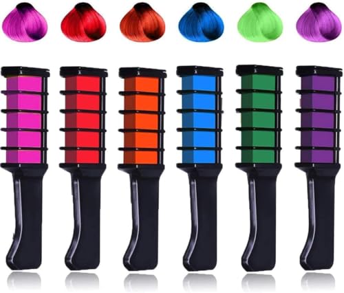 - 6 أمشاط طباشير شعر لامعة مؤقتة - فقط اختاري لونًا واحدًا أو امزجي اللون لتصنعي لون شعرك. امنح شعرك مفعمًا بالحياة كما تريد. هدية رائعة وفريدة من نوعها للأطفال أو البالغين