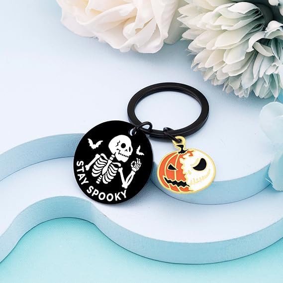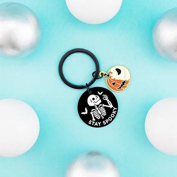 fashion mania - سلسلة مفاتيح بتصميم جمجمة للهالوين من فاشون مانيا، ديكور قوطي، هدايا ساحرة للنساء، سلة مخيفة لها، سلسلة مفاتيح بتصميم جمجمة، اكسسوارات للهالوين، سلسلة مفاتيح شبح للاصدقاء
