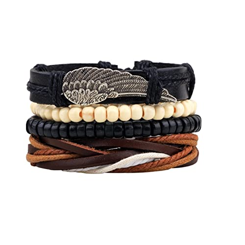 fashion mania - اساور ملفوفة مصنوعة يدويا من حبل مضفر للرجال من فاشون مانيا، اساور حلقية جديدة متعددة الطبقات من الخرز الازرق