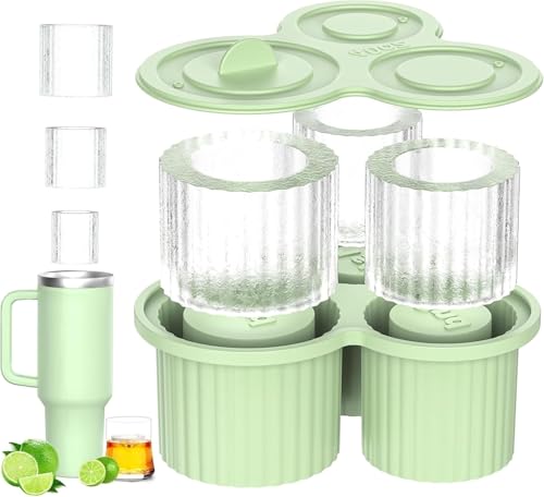 fashion mania - صينية مكعبات ثلج لكوب ستانلي 887 مل - 1 لتر بتصميم أسطواني من السيليكون الزمردي مع غطاء للمشروبات والكوكتيل من فاشون مانيا (لون أخضر)