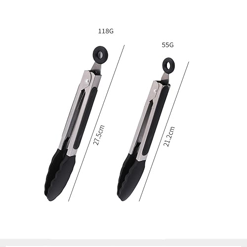 fashion mania - مساكة مطبخ باطراف سيليكون من فاشون مانيا - ملاقط ستانلس ستيل للطبخ - مساكة 27.5 سم و21 سم مع مقابض مطاطية سيليكون، صغيرة وكبيرة - ملاقط شواء معدنية مع قفل