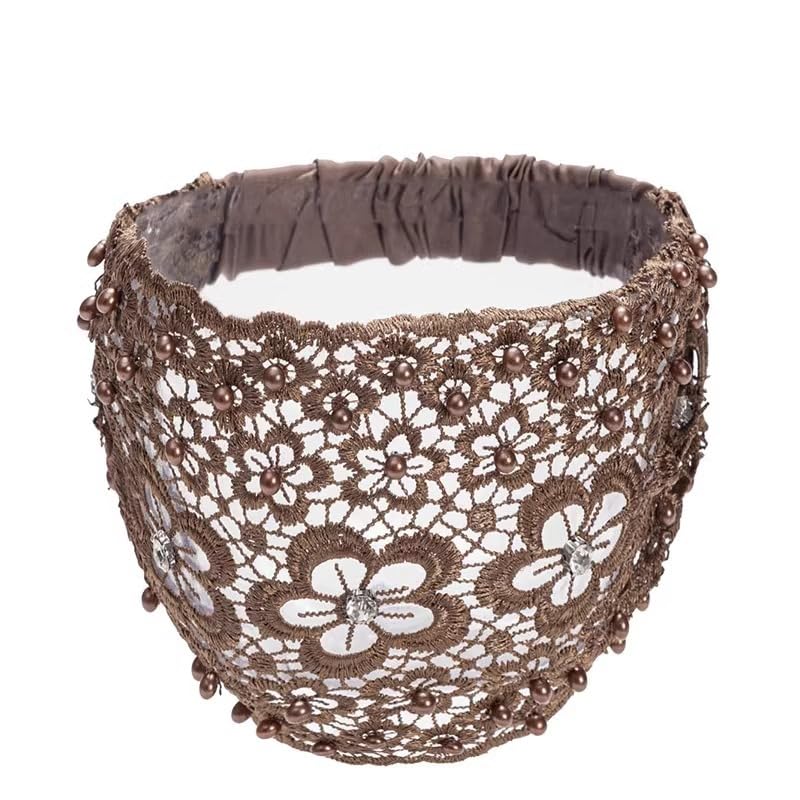 fashion mania - شريط راس من الدانتيل للنساء من فاشون مانيا، شريط راس عريض مرن مزين باللؤلؤ واللؤلؤ، اكسسوارات شعر عصرية للنساء، لون عشوائي (كاكي، مقاس واحد)