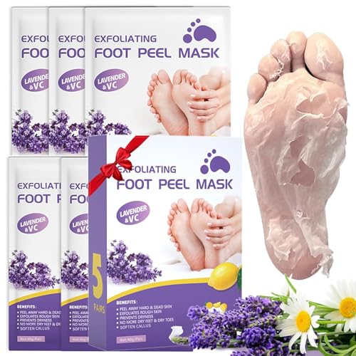 fashion mania - قناع لتقشير القدم باللافندر من فاشون مانيا جل الجافة والمتشققة وازالة الجلد الميت واصلاح الكولاجين الغني والكعب الخشن 5 ازواج