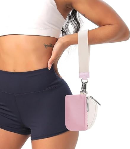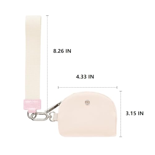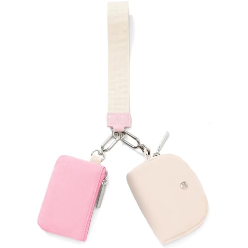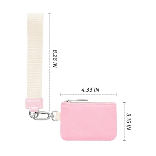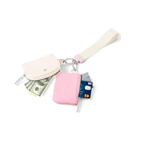 fashion mania - محفظة صغيرة بسلسلة مفاتيح حول المعصم وسوستة للنساء، شنطة مزدوجة، محفظة محمولة حول المعصم، محفظة عملات معدنية صغيرة، جيب عملات معدنية للنساء (بيج) (بينك)