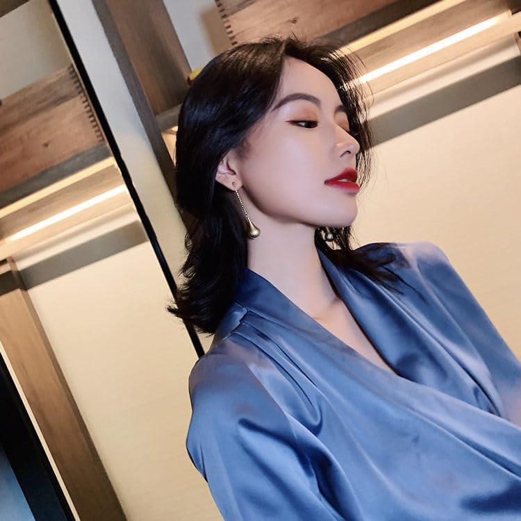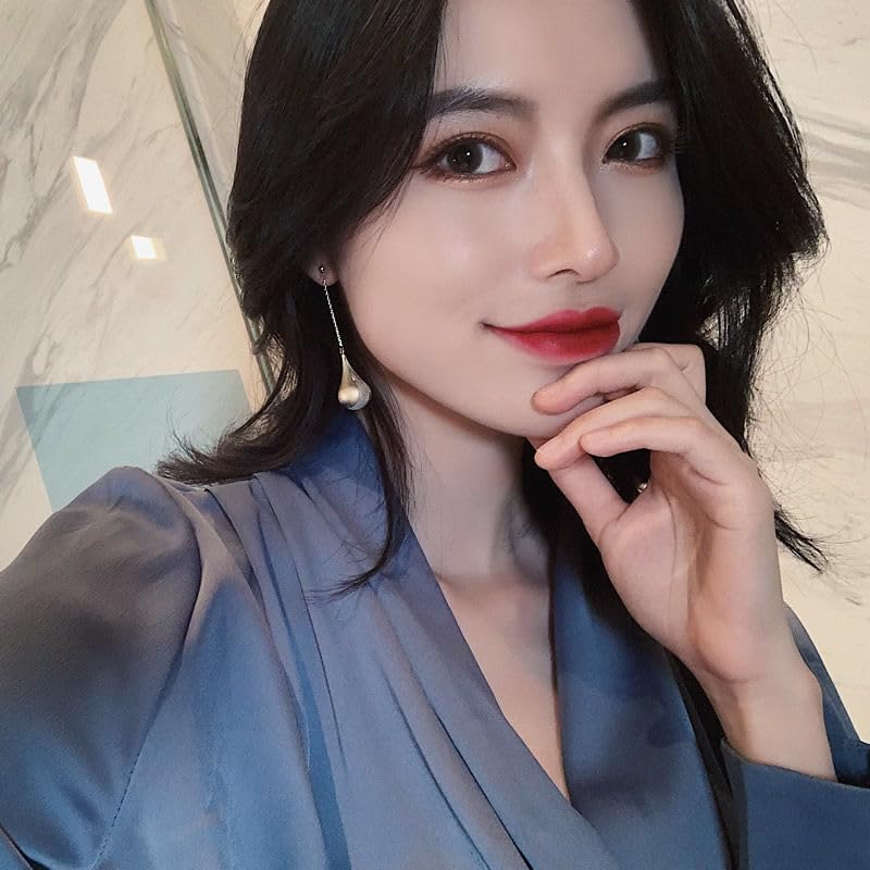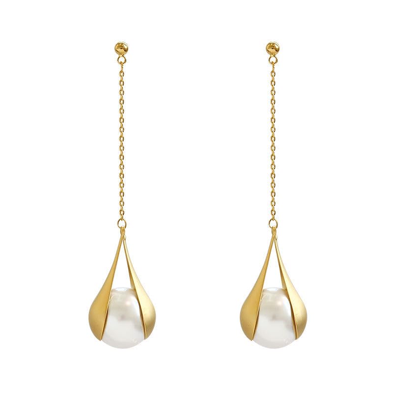 fashion mania - اقراط لؤلؤ انثوية طويلة من فاشون مانيا متدلية بنمط هيبستر ذهبي للنساء