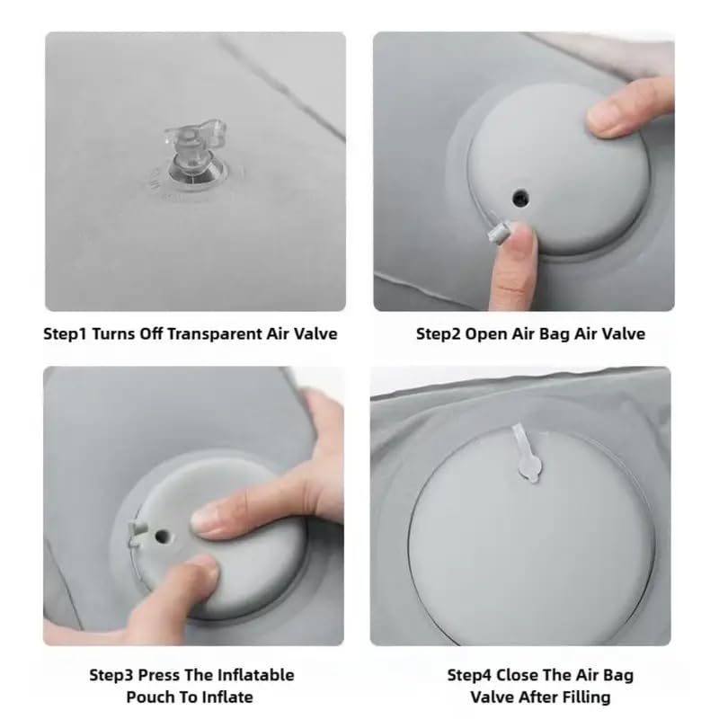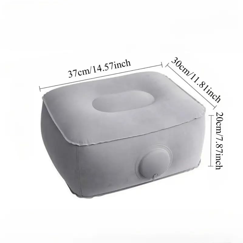 fashion mania - وسادة مسند قدم محمولة قابلة للنفخ من فاشون مانيا، وسادة سفر بسطح ناعم مع مضخة هواء للطائرات (رمادي بالكامل)