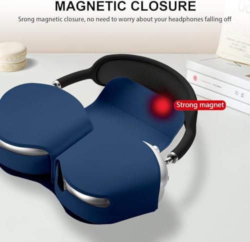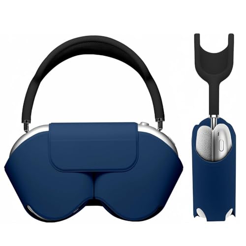 fashion mania - حافظة حماية من فاشون مانيا لسماعات ابل ايربودز ماكس، حافظة ذكية من جلد البولي يوريثين الناعم مع وضع النوم، حافظة حمل للسفر مضادة للغبار (ازرق)