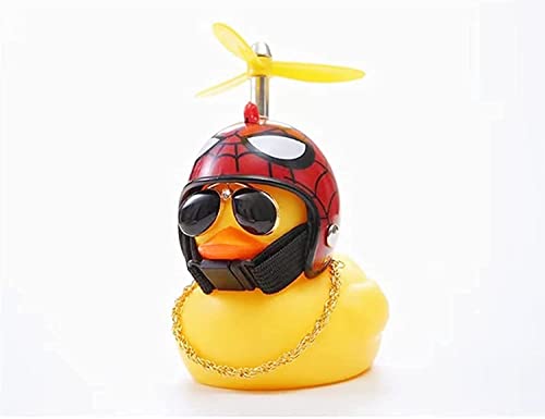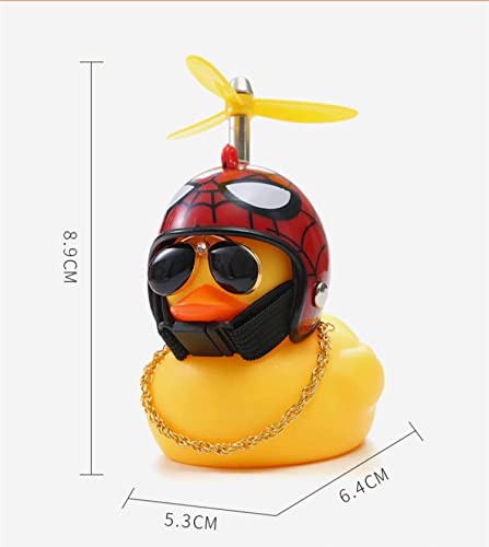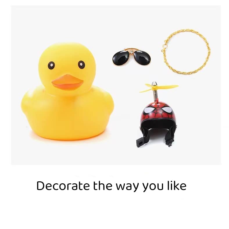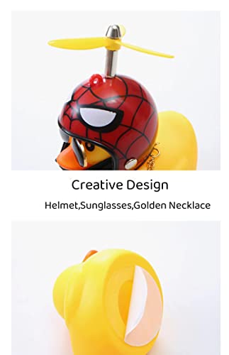 Generic - لعبة البطة المطاطية من فاشون مانيا كزينة للسيارات على شكل بطة صفراء تستخدم كزينة للوحة العدادات، ابواق دراجة على شكل بطة ضغط بخوذة مروحية ونظارة شمسية وقلادة ذهبية بتصميم الرجل العنكبوت