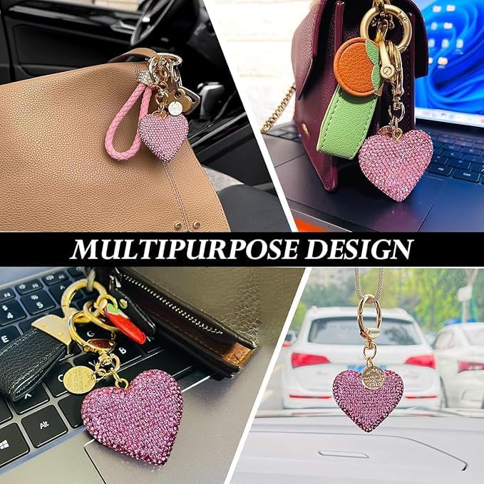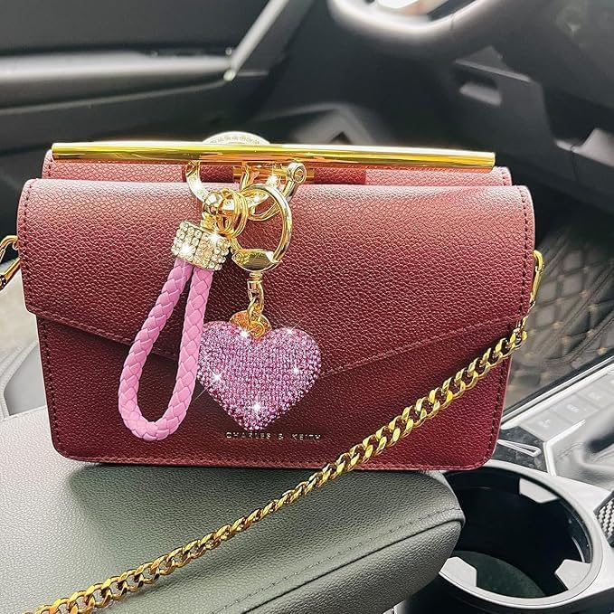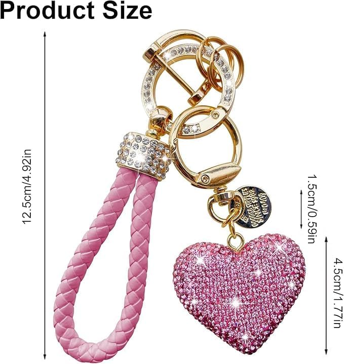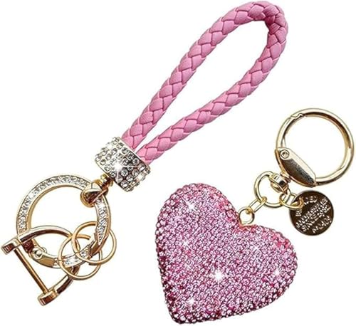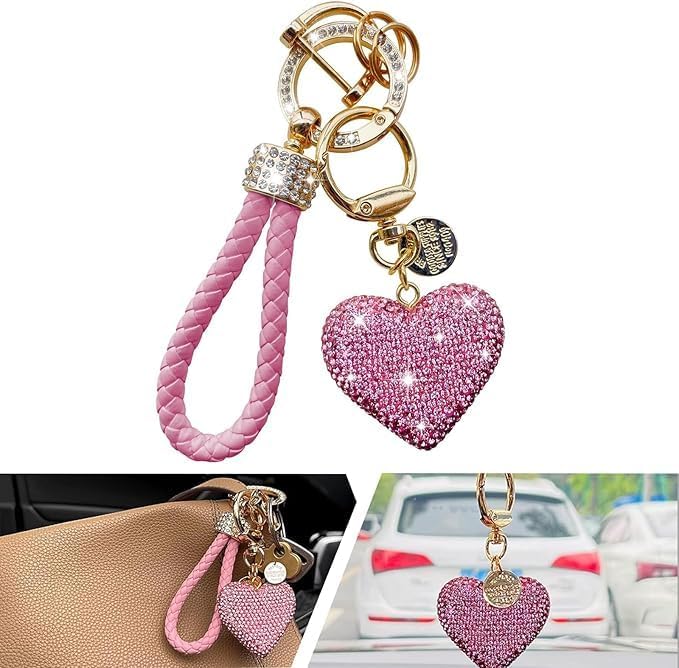 fashion mania - سلسلة مفاتيح على شكل قلب مرصع بحجر الراين اللامع سيارة جميلة ولطيفة مع بلينغ هدية شخصية مثالية للنساء والفتيات بينك من فاشون مانيا زهري جلد