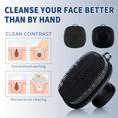 fashion mania - فرشاة تنظيف الوجه الرجالي المصنوعة من السيليكون، فرشاة غسيل يدوية مقاومة للماء للعناية بالبشرة للتنظيف والتقشير (لون أسود)