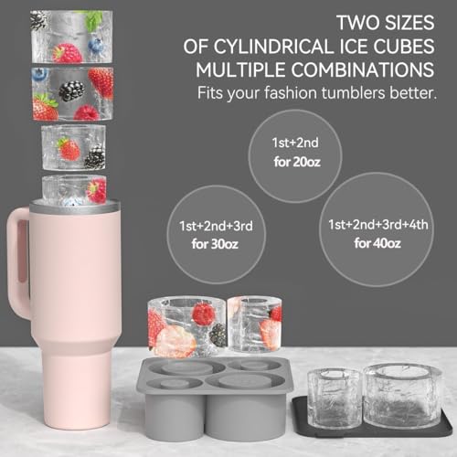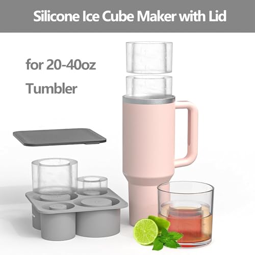 fashion mania - قوالب مكعبات ثلج من السيليكون لكوب ستانلي بسعة 591 مل و887 و1.2 لتر مع أغطية للمشروبات الباردة والمشروبات والقهوة (رمادي)