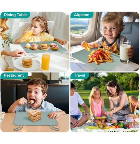 - تناول الطعام في الخارج بدون قلق: مصمم أثناء زيارات المطاعم أو السفر أو الوجبات أثناء التنقل، حيث يخلق مفرش المائدة المصنوع من السيليكون منطقة طعام نظيفة ومحددة في أي مكان. إنه يحل ضغوط الطاولات العامة الفوضوية ويحافظ على طعام طفلك محفوظًا - حتى تتمكن من التركيز على اللحظة وليس الفوضى.