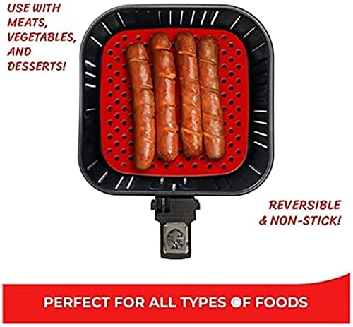 Spaceshoop - بطانات سيليكون مربعة للمقلاة الهوائية مقاومة للالتصاق وقابلة لإعادة الاستخدام من فاشون مانيا - (21.5 سم، قطعتان، أسود وأحمر)