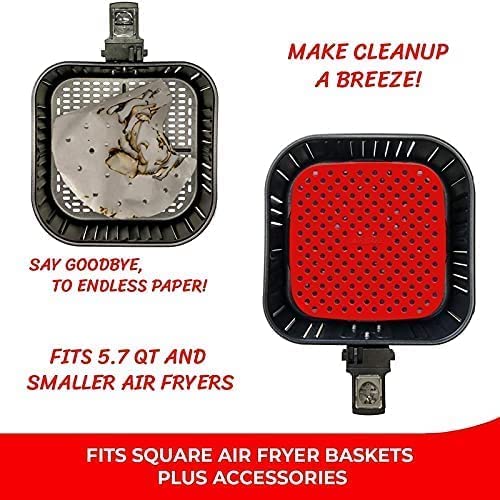 - بطانات طاسة قلي بالهواء قابلة لإعادة الاستخدام: تم تصميم بطانات طاسات القي بالهواء القابلة لإعادة الاستخدام مقاس 8 بوصة بشكل مربع لحماية سلة طاسة القلي بالهواء ومنع التصاق الطعام بالجزء السفلي من جهازك عندما يبدأ الطلاء في التقشر أو الاهتراء، توفر وسادات طاسة القلي بالهواء المصنوعة من السيليكون المال بدلًأ من ورق البرشمان أو سلة بديلة لطاسة القلي بالهواء. منتج صديق للبيئة.