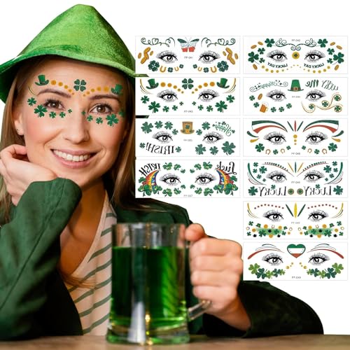 - ☘️【مجموعات متعددة مثيرة للاهتمام】إجمالي 10 قطع فريدة من نوعها تاتو ملصق وجه ملحق لعيد القديس باتريك، مصمم ليكون فريدًا ومبتكرًا، يمكن إقرانه مع أصدقائك وعائلتك. ديكورات يوم القديس باتريك الإضافة المثالية لمستلزمات العطلات الخاصة بك وإكسسوارات عيد القديس سانت باتريك.