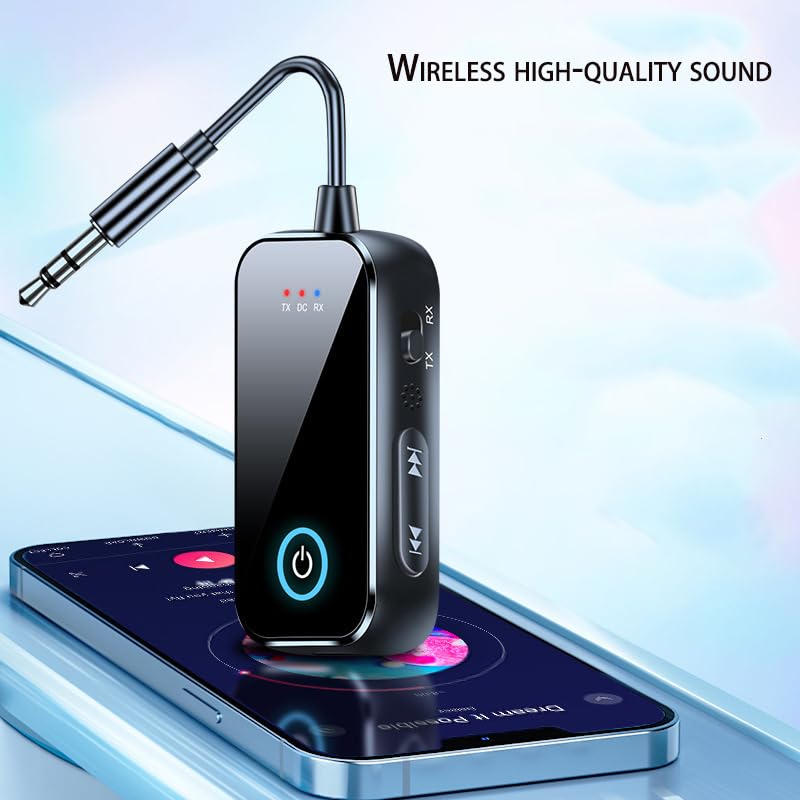 - جهاز إرسال واستقبال لاسلكي بلوتوث لسماعات الرأس مع محول مقبس صوت عبر منفذ 3.5 ملم AUX لنظام ستيريو السيارة والمنزل والتلفزيون أثناء الطيران من فاشون مانيا.